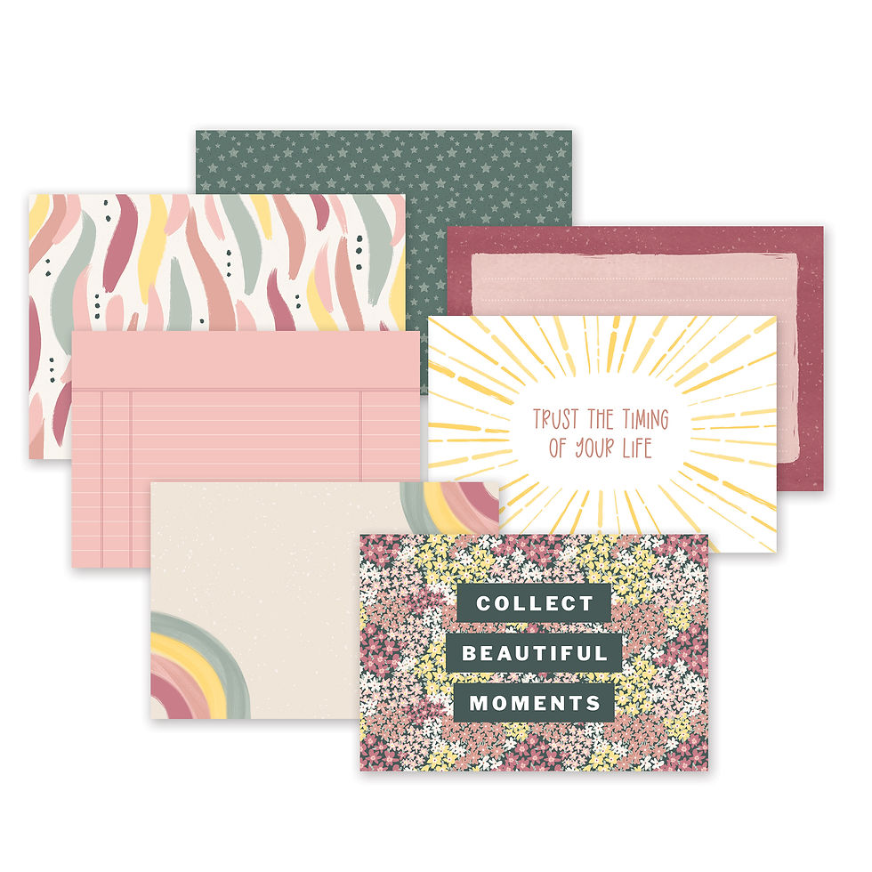 Slide-in Packs are a simple way to add some journaling or colourfully fill an empty space on a Slide-in Page. Each pack includes 24 double-sided 4x6 papers; 12 vertical and 12 horizontal unique designs.